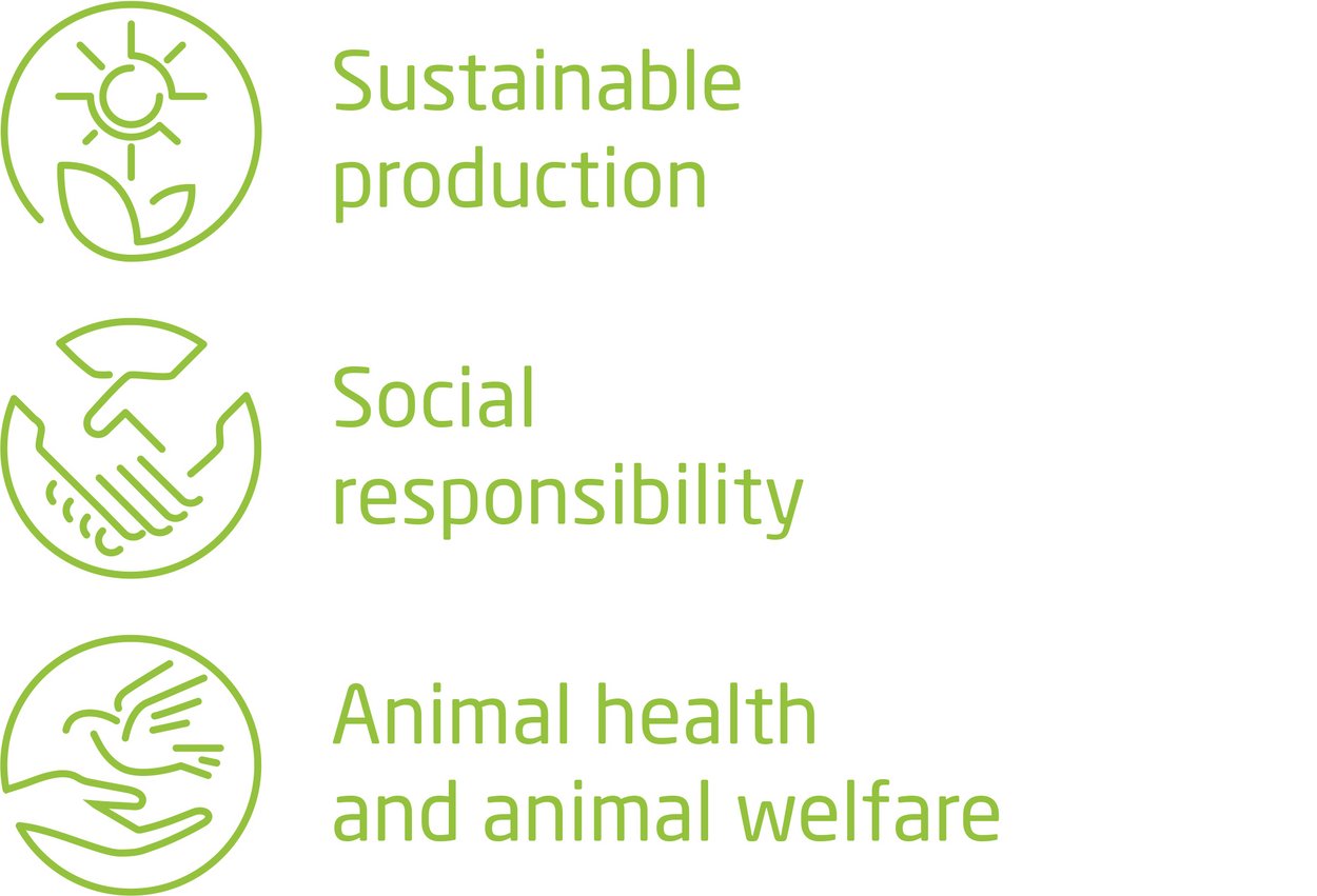 The responsible handling of our customers, employees, and suppliers, as well as the natural resources of our environment, is firmly anchored in our corporate policy. For us, sustainability means striving for ecological, economic, and social goals equally and simultaneously, while never losing sight of animal health and welfare. Long-term thinking and responsible action form the basis of our economic success.