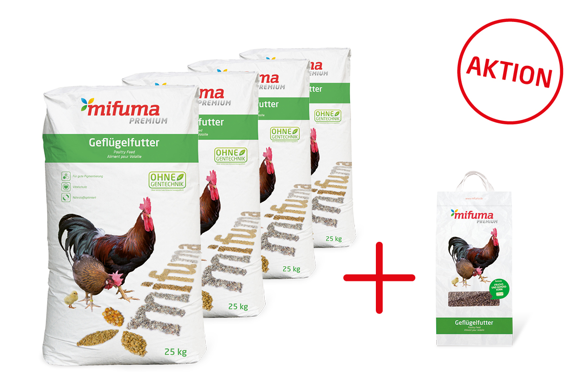 Attention poultry breeders! Just in time for the start of the breeding season, when you purchase four identical bags of the varieties Breeding Premium Flour or Pellet or Waterfowl WZ from your dealer, you will receive a 5 kg bag of Fruit and Vegetable Grain for free. The promotional period starts on 01/26 and ends on 02/09/2024.