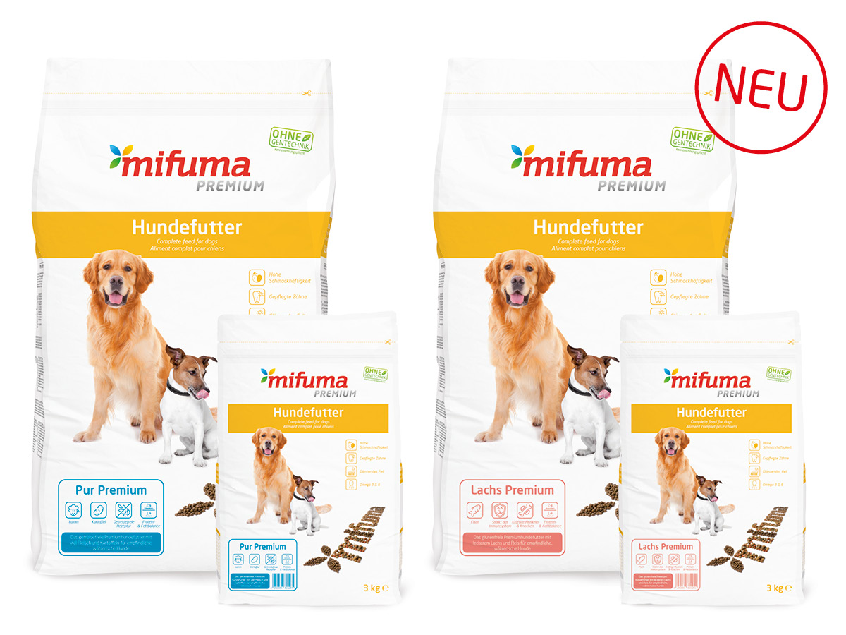 Order our dog food in a 3 kg bag and 12 kg sack conveniently to your home. Our entire premium range for dogs is now available at www.mifuma-shop.de.