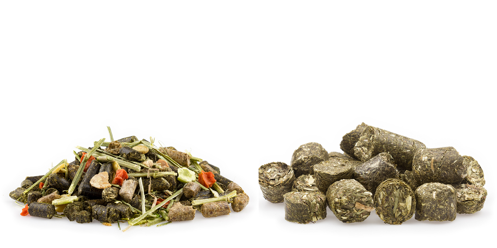 Rabbits and horses enjoy a serving of our alfalfa mix made from pure, freshly harvested alfalfa – now with a dash of vegetable oil!