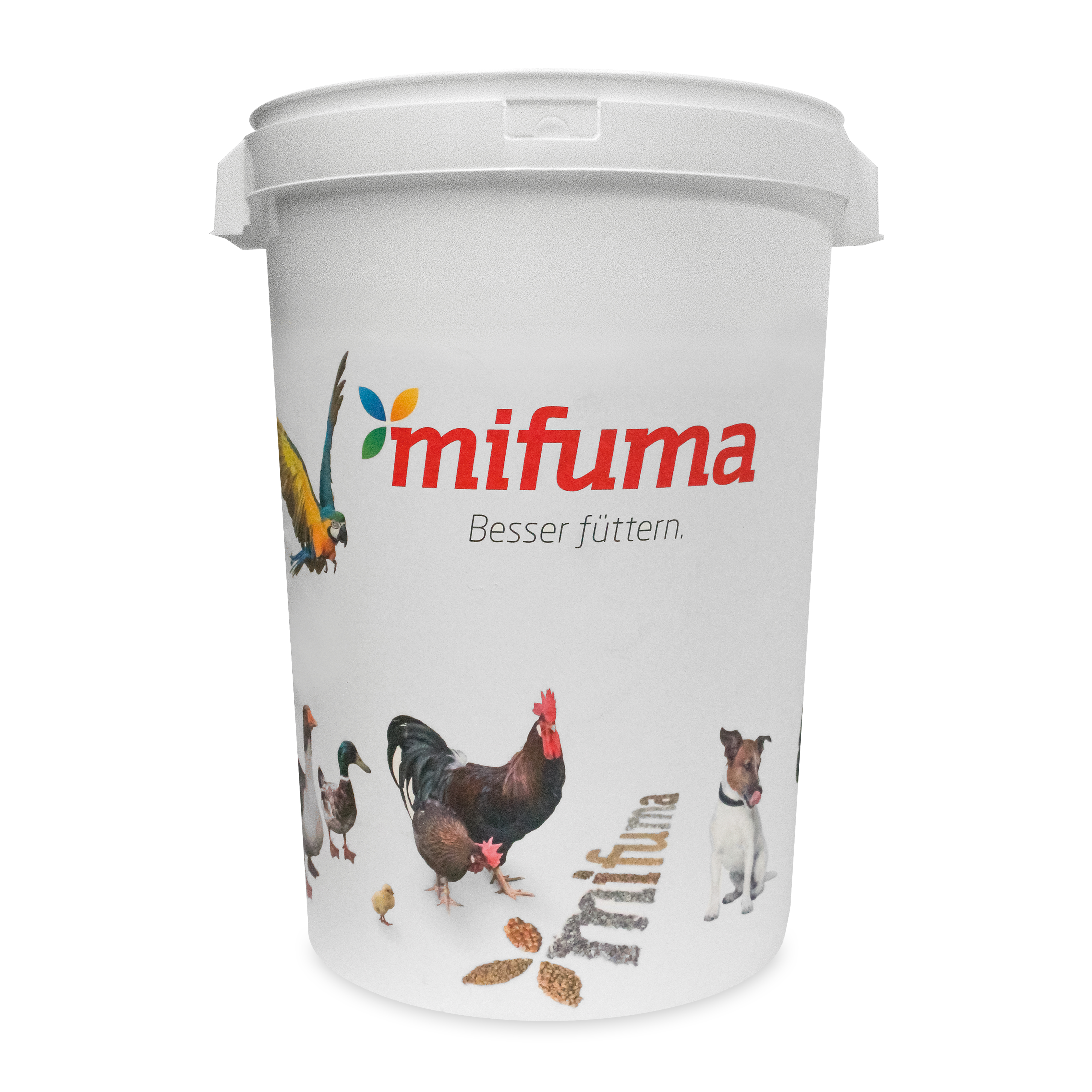 The feed bin has a volume of 42 l and a securely closing lid.